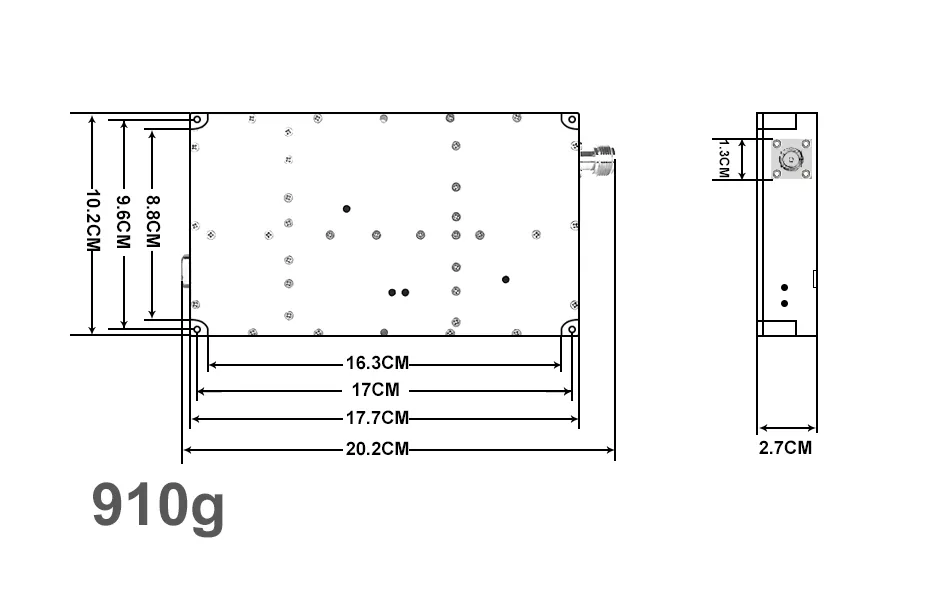 मॉड्यूल पॉवर आउटपुट 100W आहे, ज्याचा वापर WIFI सारख्या 2.4G ची सिग्नल शक्ती वाढवण्यासाठी आणि ट्रान्समिशन अंतर किंवा कव्हरेज श्रेणी वाढवण्यासाठी केला जातो. जेव्हा जास्त संप्रेषण अंतर आवश्यक असेल तेव्हा ते सिग्नल पॉवर वाढवू शकते; 2.4G पॉवर ॲम्प्लिफायर मॉड्यूल WIFI ॲम्प्लिफायर मॉड्यूल 100W WIFI बेस स्टेशन्सद्वारे उत्सर्जित होणारे 2.4G सिग्नल वाढवण्यासाठी आणि उच्च-गुणवत्तेच्या सिग्नलच्या कव्हरेजचा विस्तार करण्यासाठी WIFI सिग्नल कव्हरेज प्रकल्पांसाठी देखील योग्य आहे, जसे की मोठ्या ठिकाणी, बाह्य तात्पुरते नेटवर्किंग.